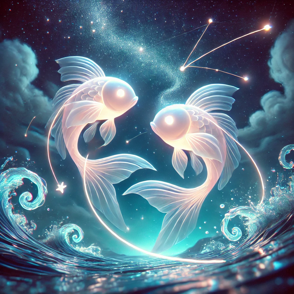 물고기자리는 두 마리의 물고기가 서로 끈으로 연결되어 반대 방향으로 헤엄치는 형상을 한 별자리입니다. 황도 12궁 중 열두 번째 별자리로, 2월 19일부터 3월 20일까지 태어난 사람들이 물고기자리의 영향을 받는다고 합니다.